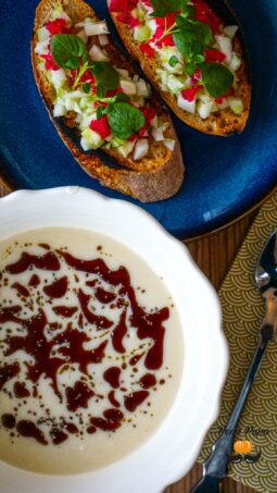 Zellerkrémleves savanyított zöldséges krutonnal