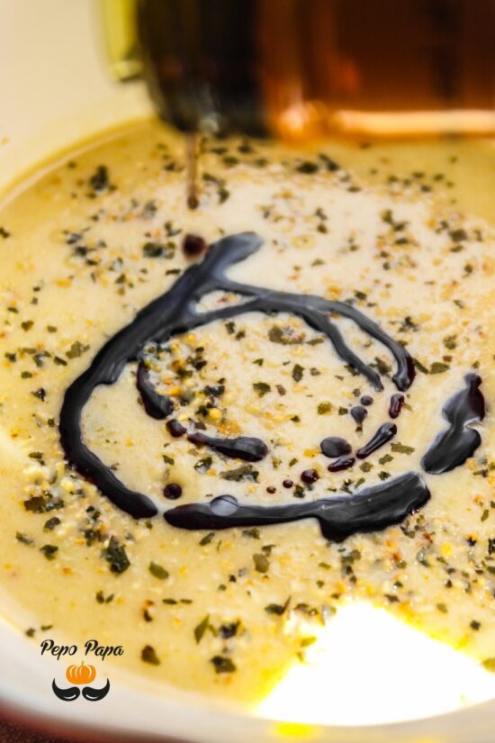Sütőtök krémleves, mangalica tepertős kovászos zsemléve.